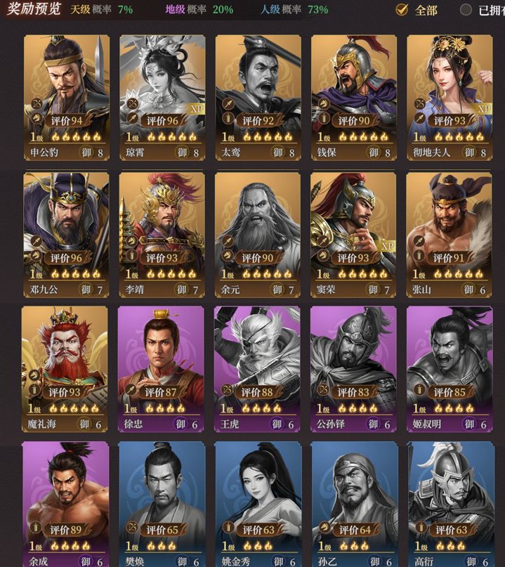 可抽:余元、太鸾、张山、魔礼海、徐忠(过渡)