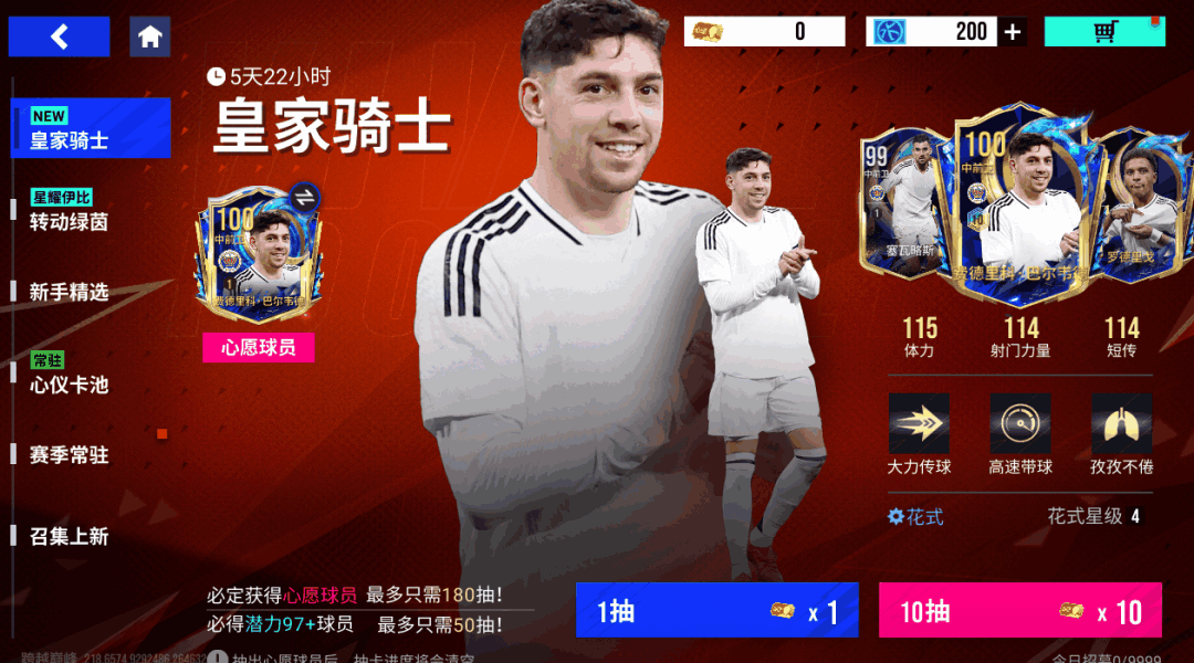 【皇家骑士】卡池将于6月23日11时至6月30日11时开启!每次招募都有概率获得100潜力巅峰巴尔韦德,99潜力巅峰罗德里戈、99精选塞瓦略斯等球员!