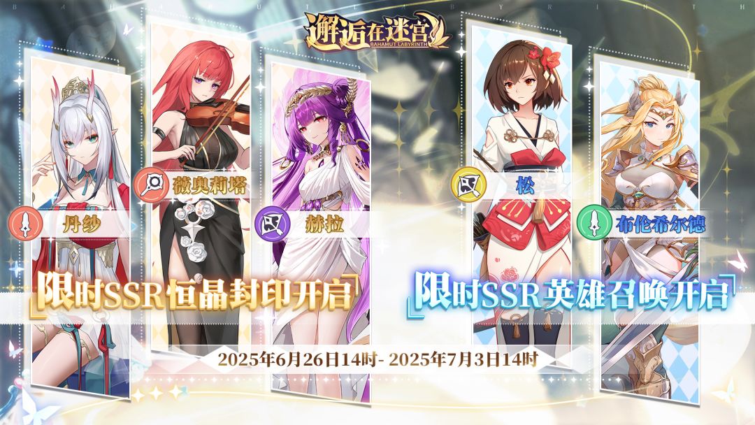 本期限时SSR恒晶封印开启英雄:丹纱、薇奥莉塔、赫拉