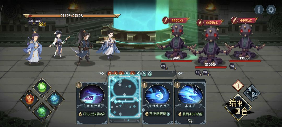 打法思路 刷三清化水符不消散,两轮爆发。最后一轮用丹药叠加的伤害处理,战意,幽藤,法力丹药皆可。