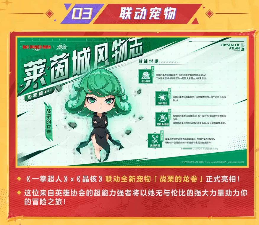 6月26日,《晶核》x《一拳超人》联动版本「一拳破界」正式上线。