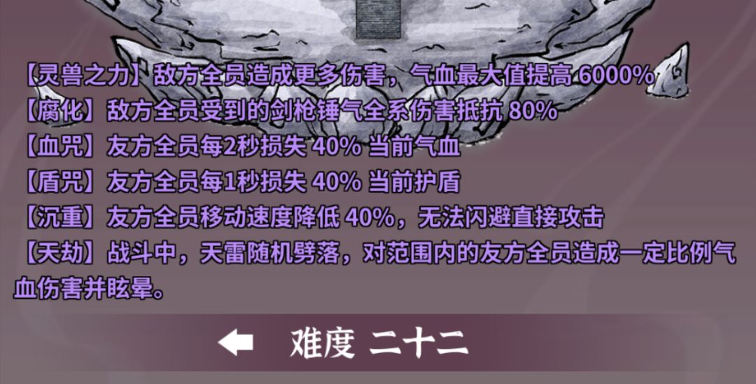 为适应版本,高层生存时建议采用气血流,以规避高额盾咒从而保证生存率。护具器纹采用九冥束心衣,金气在后方受击可提高减伤,且叠满层后可回复高额气血。灵兽词条神火狐可改为岩冠鸡。