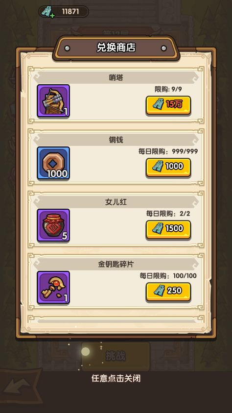 玩法主要产出和防御塔相关的所有材料,可以在兑换商店换取哨塔,防御塔升级材料(木材)、防御塔技能升级材料(城防图)、防御塔符文(史诗符文箱子)玩家按需购买即可。