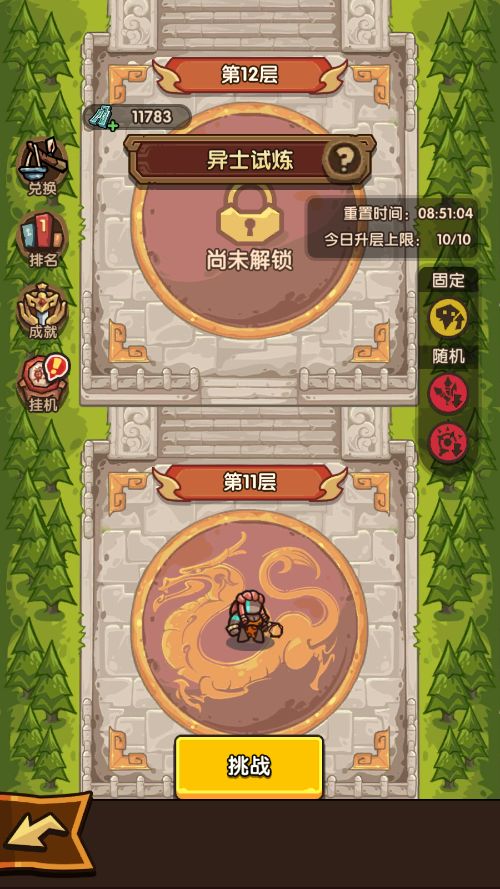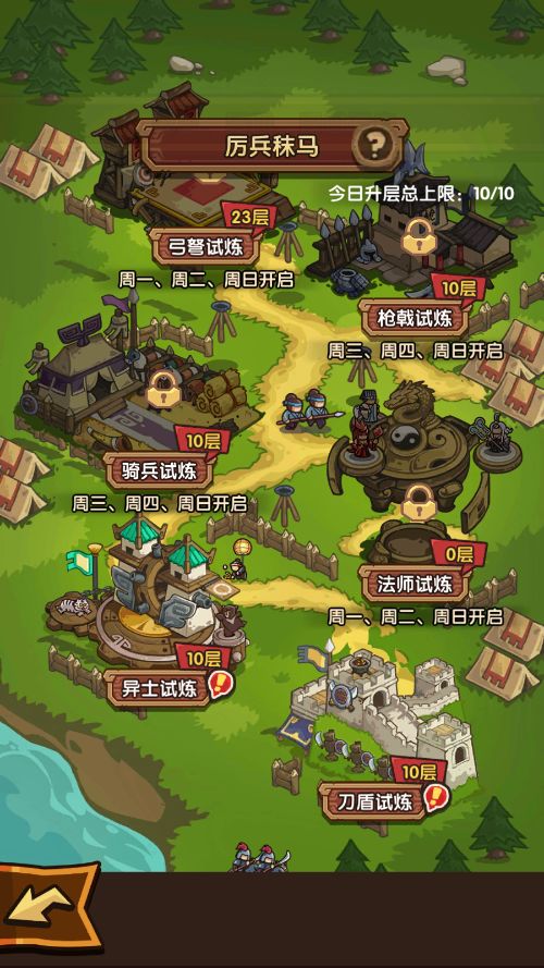 2.厉兵袜马通关一层后解锁下一层,6种试炼共用每日升层上限,且每种试炼有各自的每日升层上限;