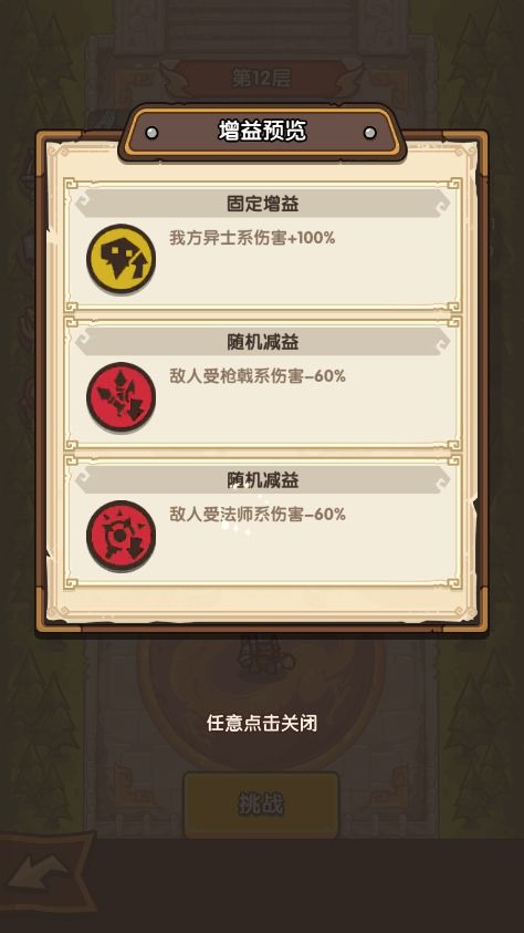 3.各试炼各自拥有固定增益效果,并每日随机一种减益效果;