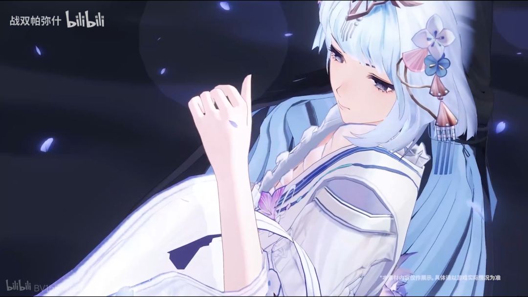 氛围营造堪称完美。它塑造了一种“静谧的祈愿”之境。无论是黑发形态的端庄,还是蓝发形态的空灵,都散发着一种淡淡的、凄美而神圣的气息。光影柔和,色彩淡雅(以白、蓝、紫为主色调),配合飘散的花瓣,如同月光下的一场梦境,或是一场庄严的祭神仪式。它所传达的不是热烈的喜悦,而是一种历经风雨后的平静、感恩与期盼。