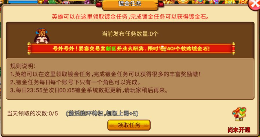 (五) 仅需9元,开通跑环特权,每日享镀金任务+5,行动力上限+50,跑环奖励翻倍!详见[月福-跑环特权]