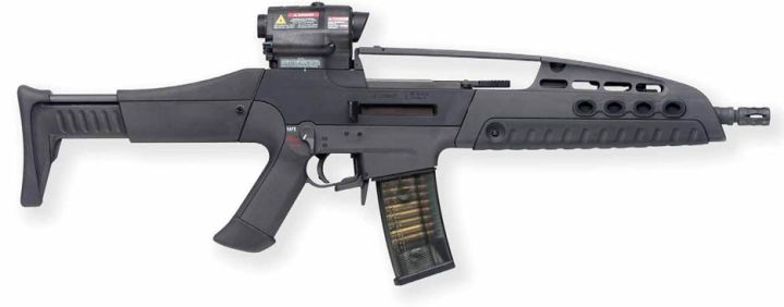 该枪自带红点瞄准镜(封闭式内红点),并具有较高射速和初速,在中近距离有很强的输出火力。