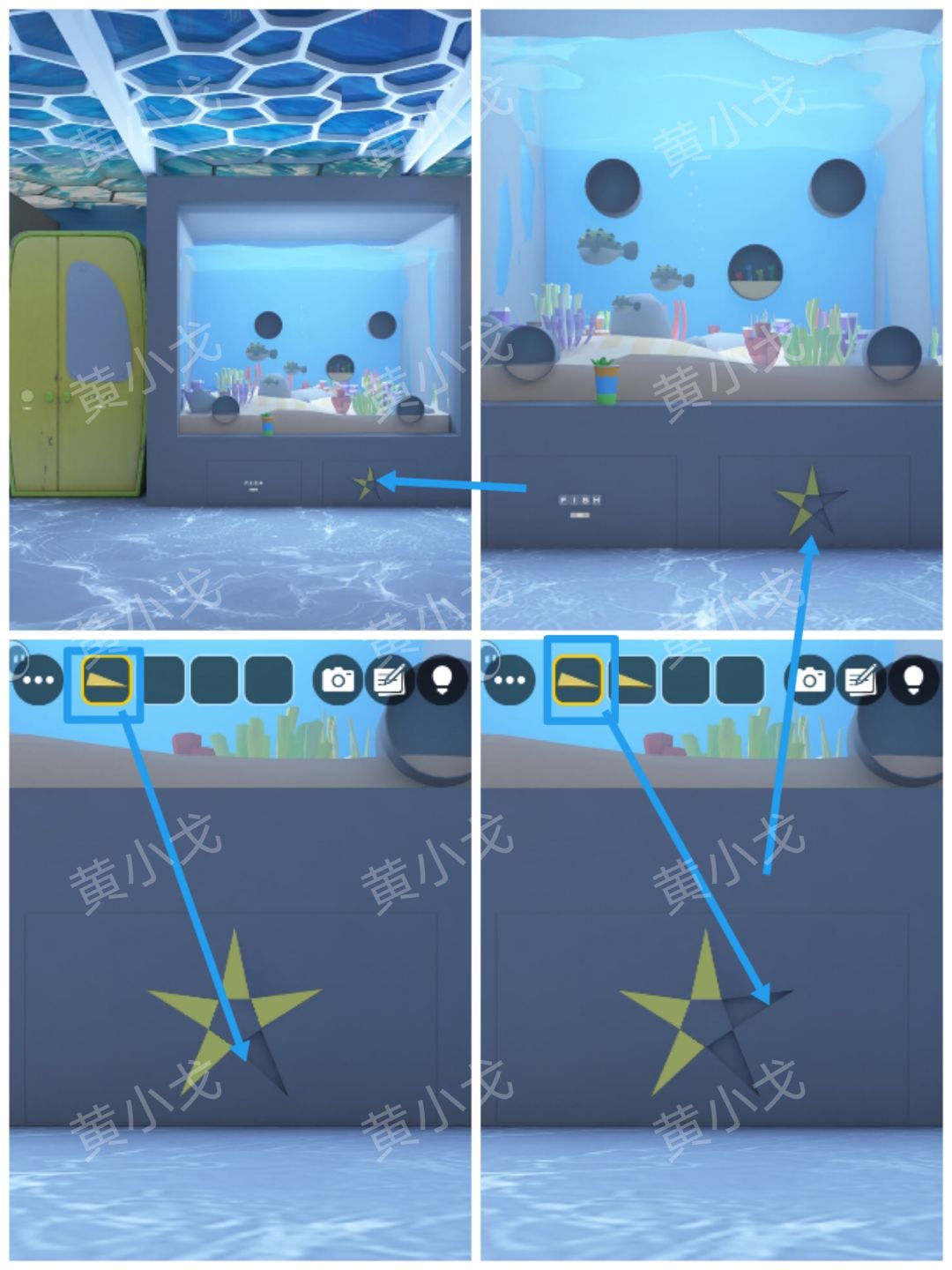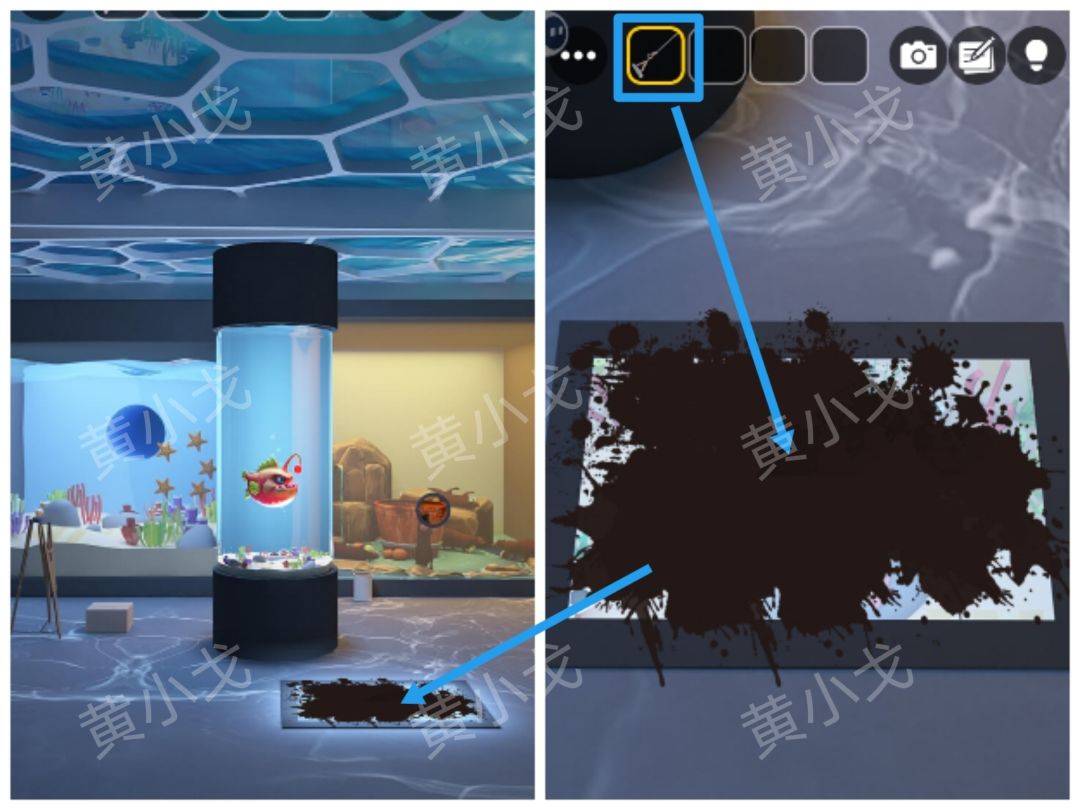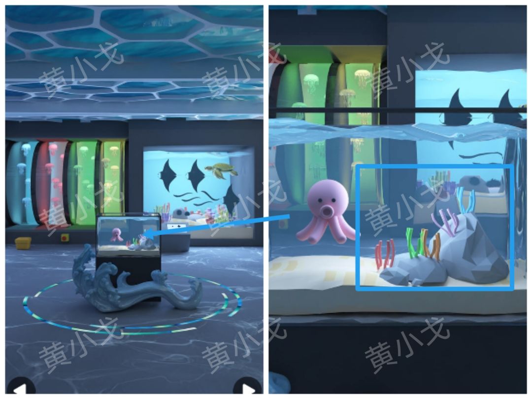 8.点击左侧方形水族箱里的海星,获得线索