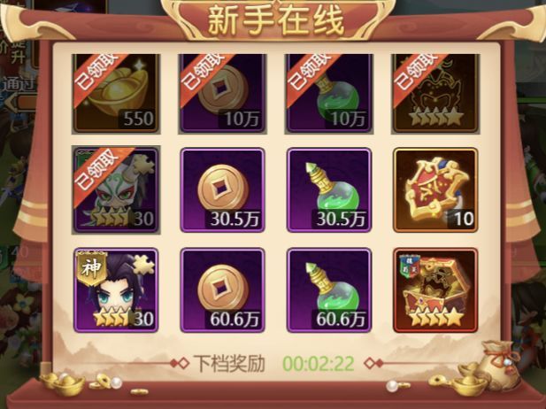 在线奖励放置挂机,畅爽升级,轻松挑战群雄!游戏内在线达到条件即可领奖,挂机领奖两不误!