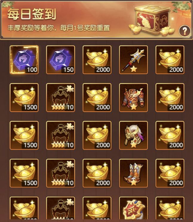 每日签到奖励每天签到即可领奖,巨额元宝、武将碎片、升级材料随便拿,良心福利,超爽体验,轻松战力暴涨!