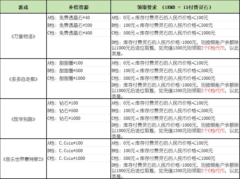 2.对于安卓渠道服(含B站、OPPO、VIVO、小米、UC、4399)的参赛者,补偿资源的发放时间请以渠道服的补偿公告为准。