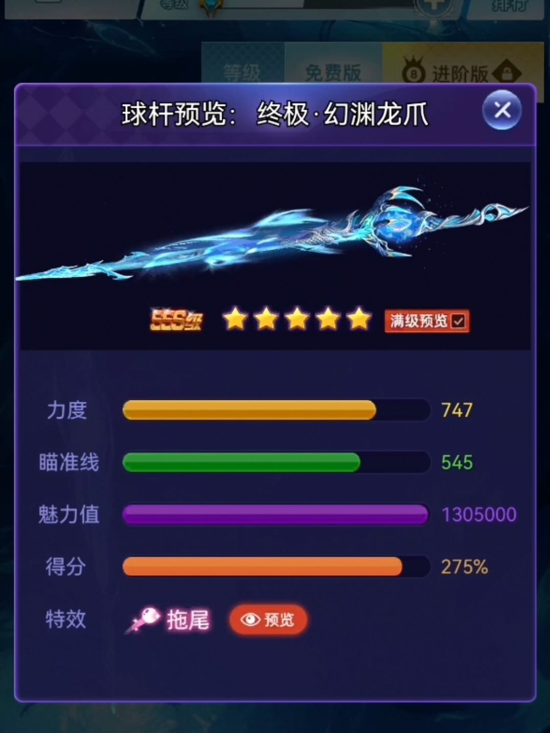 力度747,瞄准545,魅力1305000