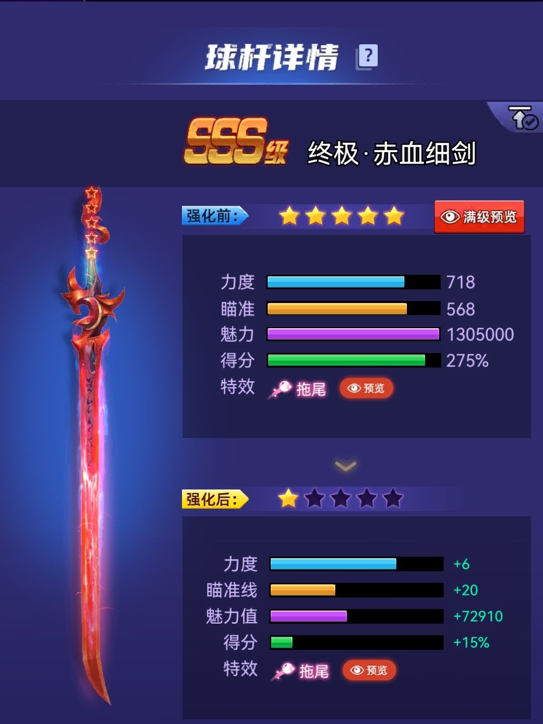 力度718,瞄准568,魅力1305000