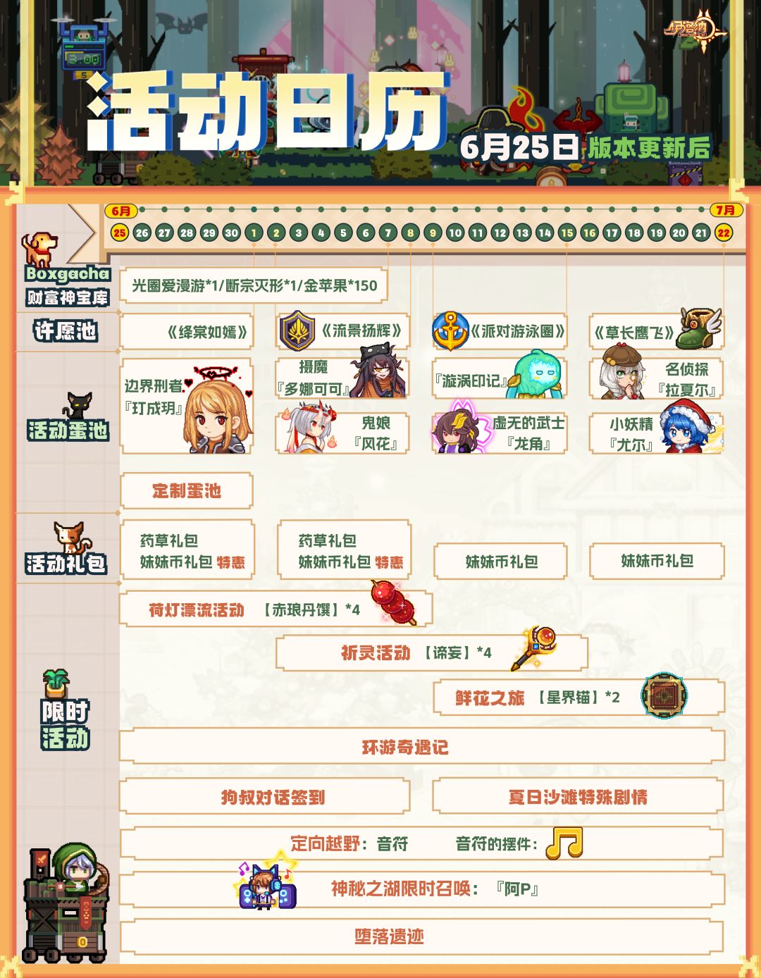 e.开启“夏日乐章”活动:2025.06.25 更新后---- 2025.07.22 23:59,在活动期间内,提交指定数量的【音符】可以兑换诸多豪礼;