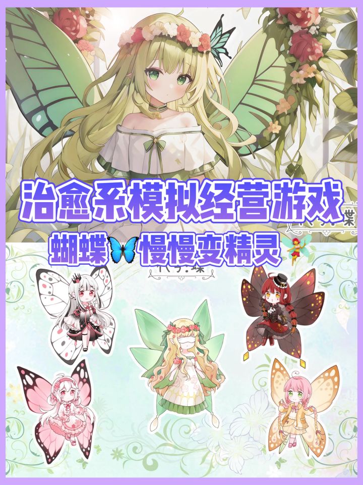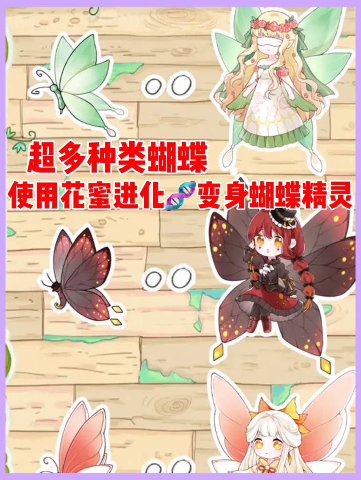 🦋色彩鲜明的画风,犹如置身在童话里的莫奈花园!超多种类的蝴蝶,进化后变成一个个可爱的小精灵!