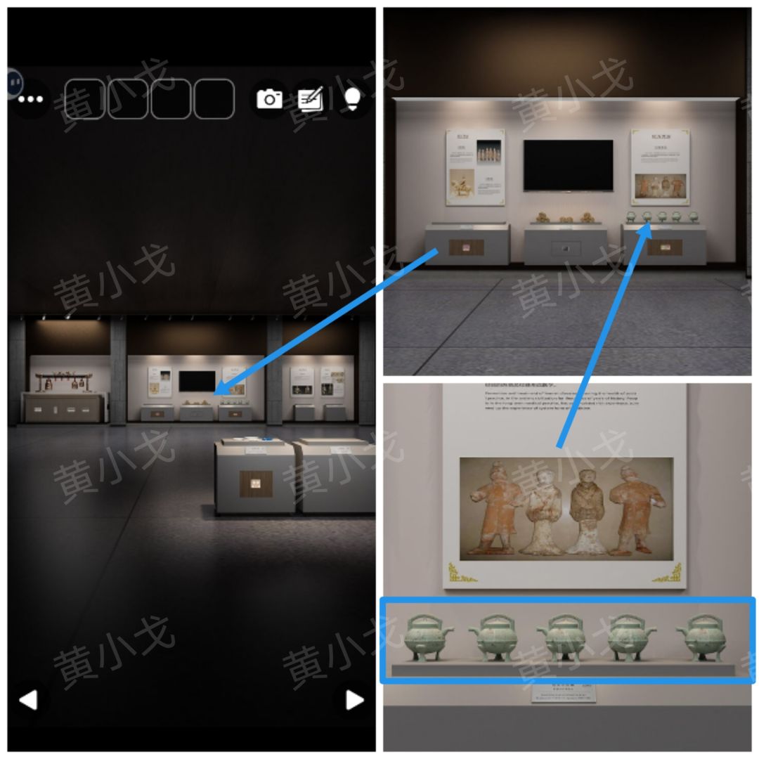 1.点击查看后方中间展览柜右侧柜子上的陶罐,获得线索
