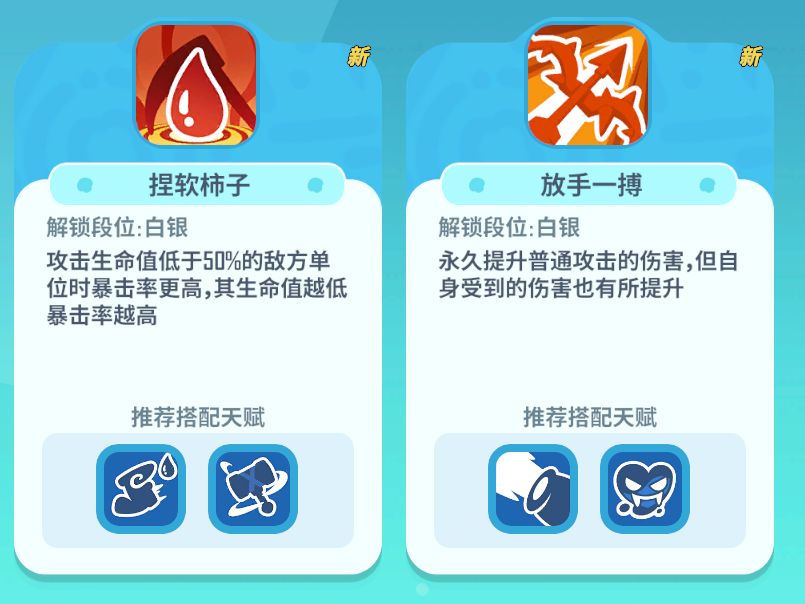 天赋:核心天赋选择【捏软柿子】或【放手一搏】,没有的话也可以选择【龟速猎手】,这些都是不错的核心输出天赋。