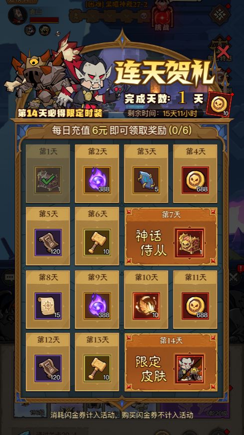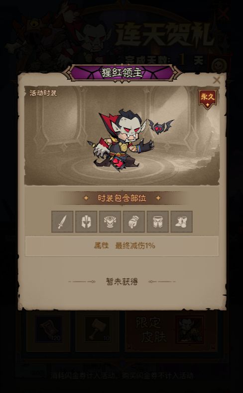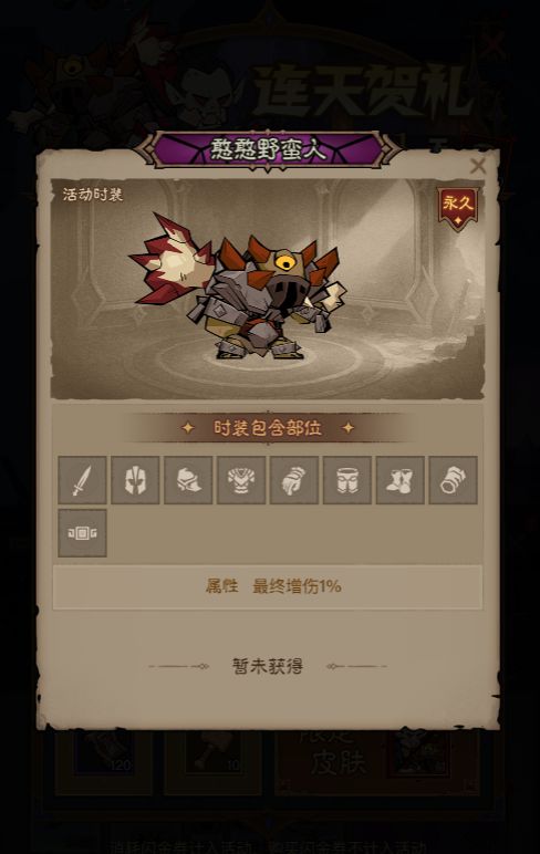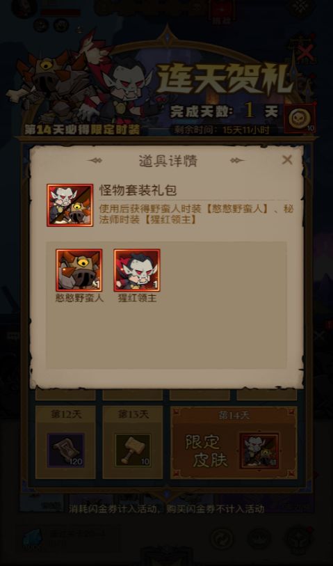 (3)完成14天连天贺礼可以获得限定时装“怪物套装礼包”。(怪物套装礼包包括憨憨野蛮人时装和猩红领主时装。)