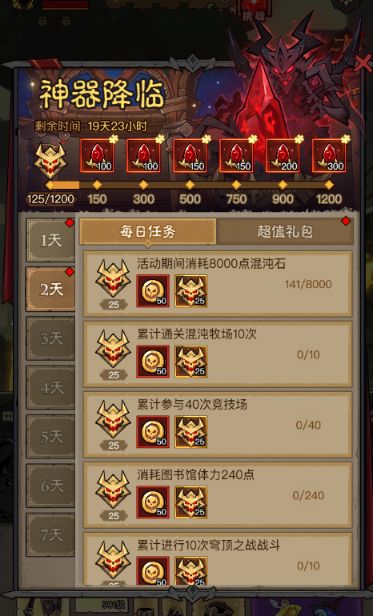 (1)完成每日的神器降临任务可以获得奖励以及活动积分。