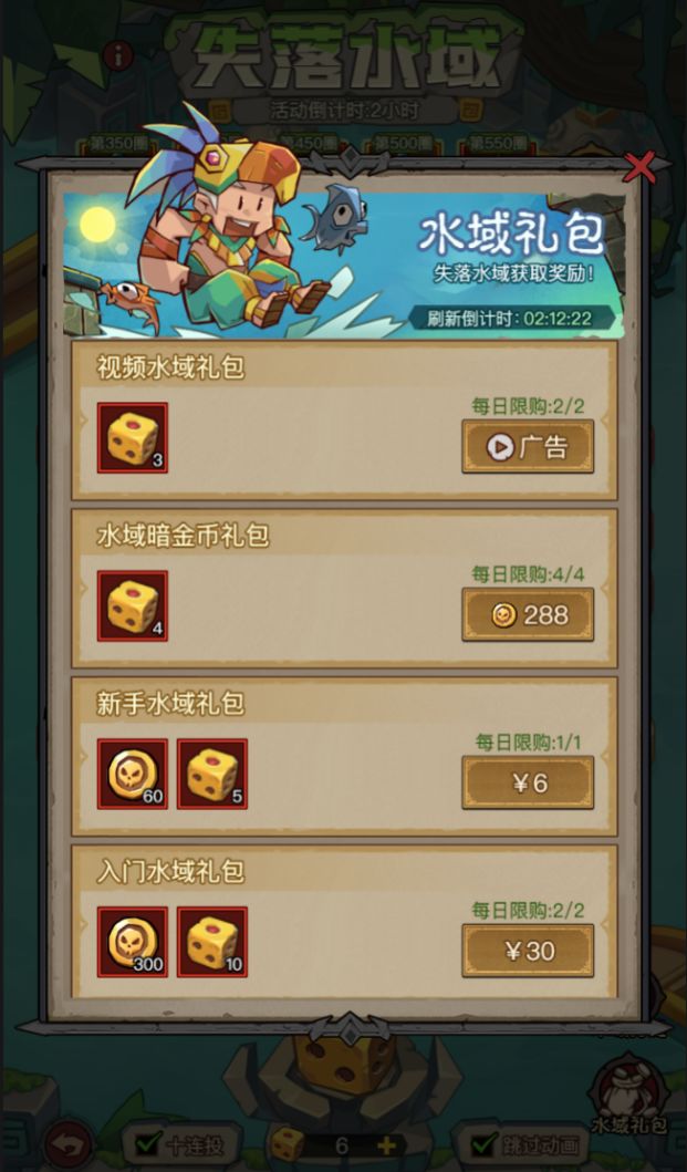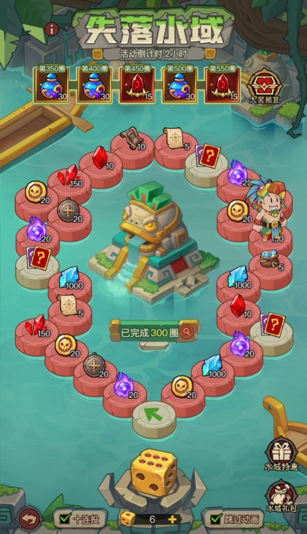 (1)使用失落骰子进行投掷,根据投掷点数前进对应格数到达格子停止后获得格子上的奖励,并且格子等级提升(6个点数的投掷概率相同)
