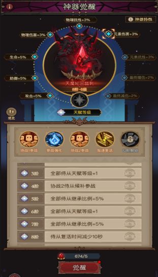 (2)消耗对应的神器觉醒道具可以对神器进行觉醒升阶。