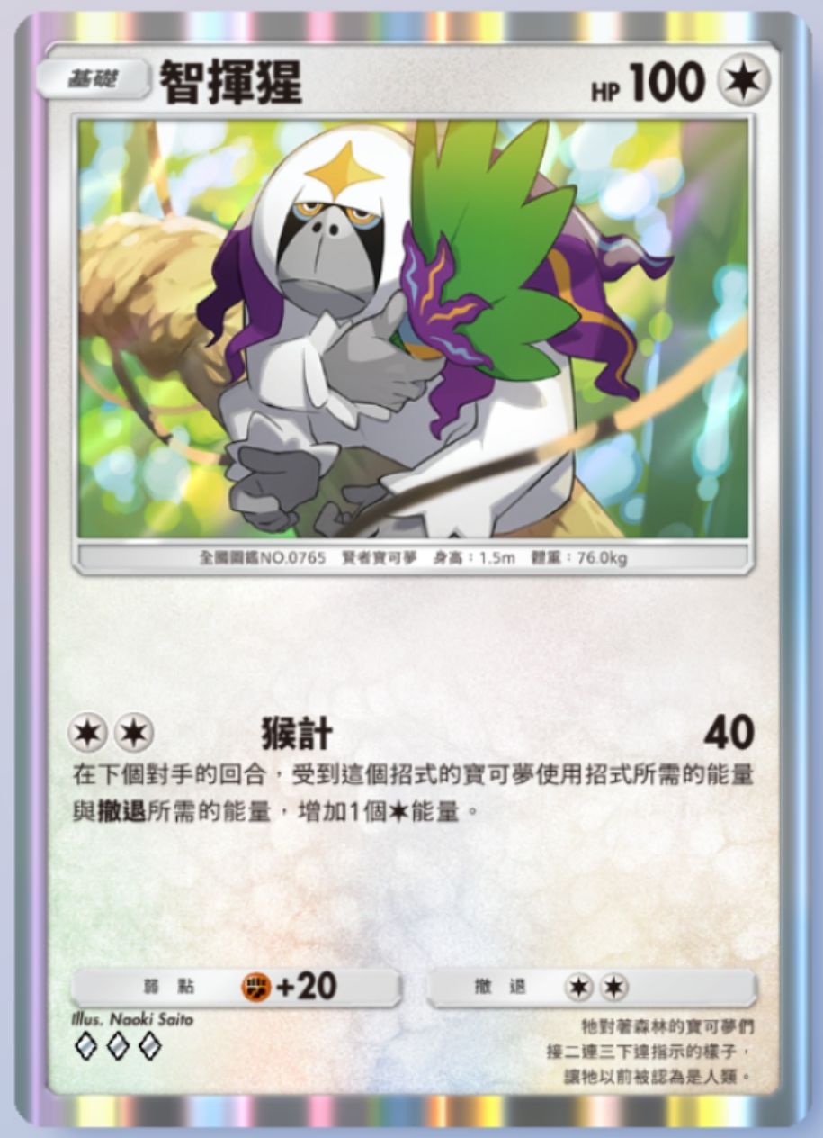 智挥猩的猴计能让对方出招与撤退的能量加一,让敌人想打没能量,想逃也逃不了,被迫在原地罚站挨打。此时敌人只有两个选择,要不给战斗场宝可梦上更多能量,要不给备战场宝可梦上能量,让战斗场单位送死。