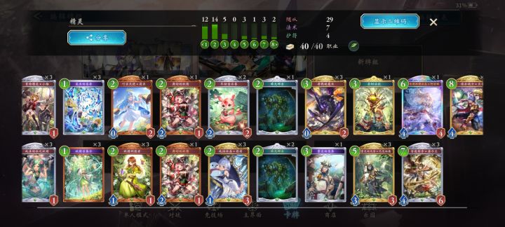 游玩思路是开局保留533,虫子,还有一两费给妖精的卡牌,最好是水之妖精,对局思路是在稳定对局的过程中,尽量保留0~1费的资源卡,就比如妖精,玩的时候手上最少都要有两张妖精,这是比较稳定的,能铺场尽量铺场,在手上低费资源不多的时候要用533进化来解场,不要消耗手上为数不多的0~1费卡牌,在7~8费的时候,就可以通过先手1~2张妖精或者法术牌,凑个二连击,然后再拍出护符,就可以额外获得一张0费卡牌,这样四费就能弄出4连击,在拍出虫子达成五连击,就可以造成6点伤害,而每多出一张0费卡牌,伤害就加一,使用进化点伤害加二,超进化就是加三,所以0费资源卡牌能不用尽量不用