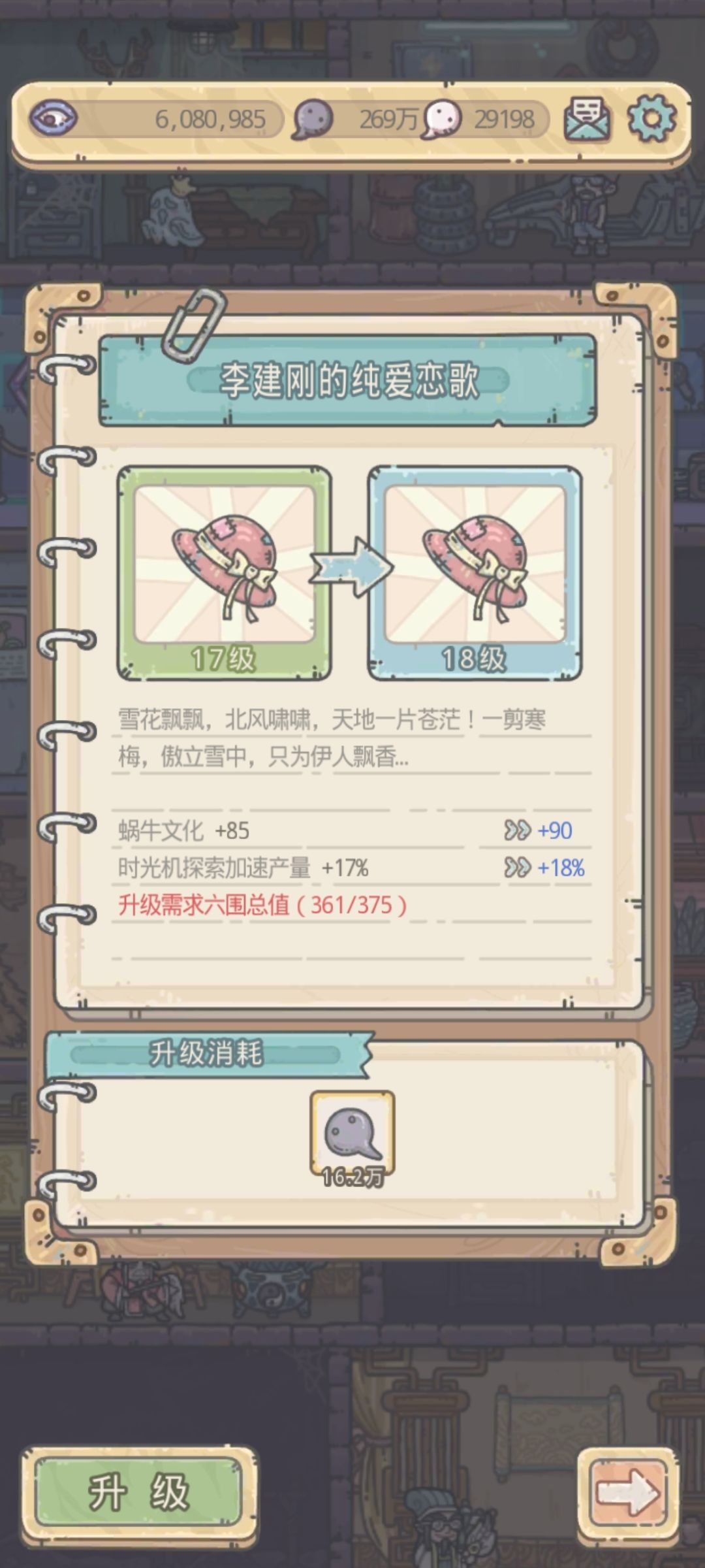 现在是13小时47分钟,涵盖的东西比较多,时光机等级,镶嵌贵重等级,加产量的贵重,共鸣,收藏家天赋,器官,小伙伴等等。许愿都在抽人气,看能不能出3a紫贵。。。