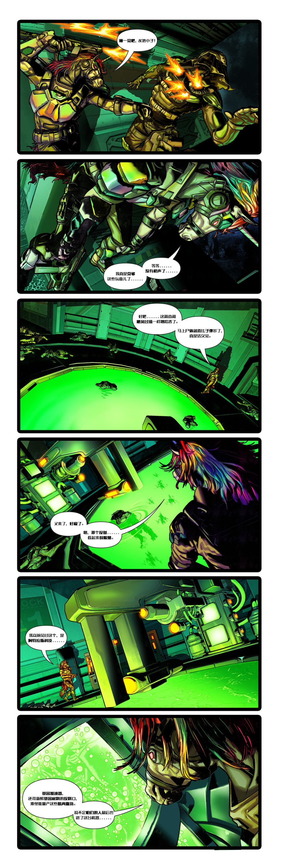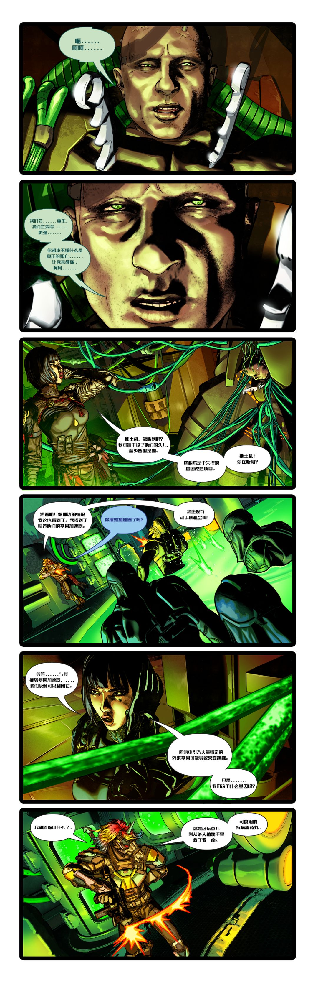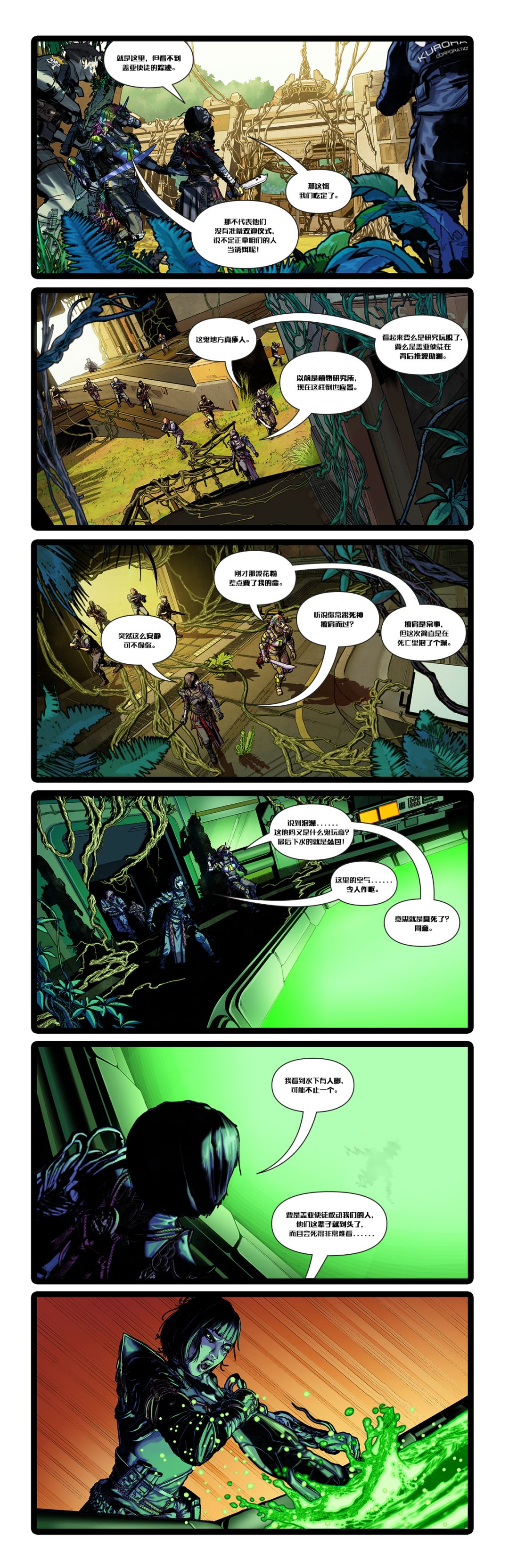 白天,疯长丛林外围降落点一架运输机盘旋在空地上方,黑花公司和LST的士兵混编小队正在搭建临时营地......
