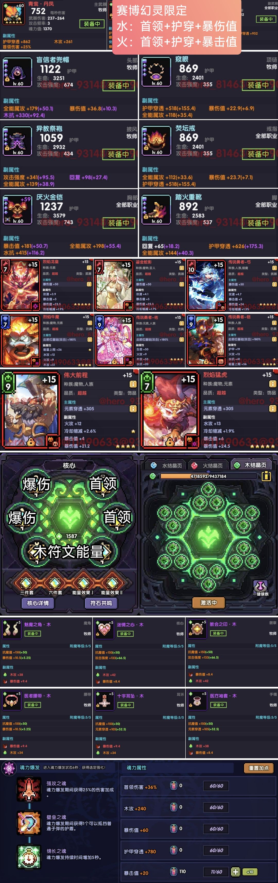 1、实战赛博幻灵套和水晶球+王棋对于火牧来说几乎平替,这个大家如果两套限定都有的话,可以对比试试,哪套属性洗得满就用哪套吧,或者不想凹水晶球就直接用赛博幻灵限定。萌新直接做赛博幻灵水火就好了。