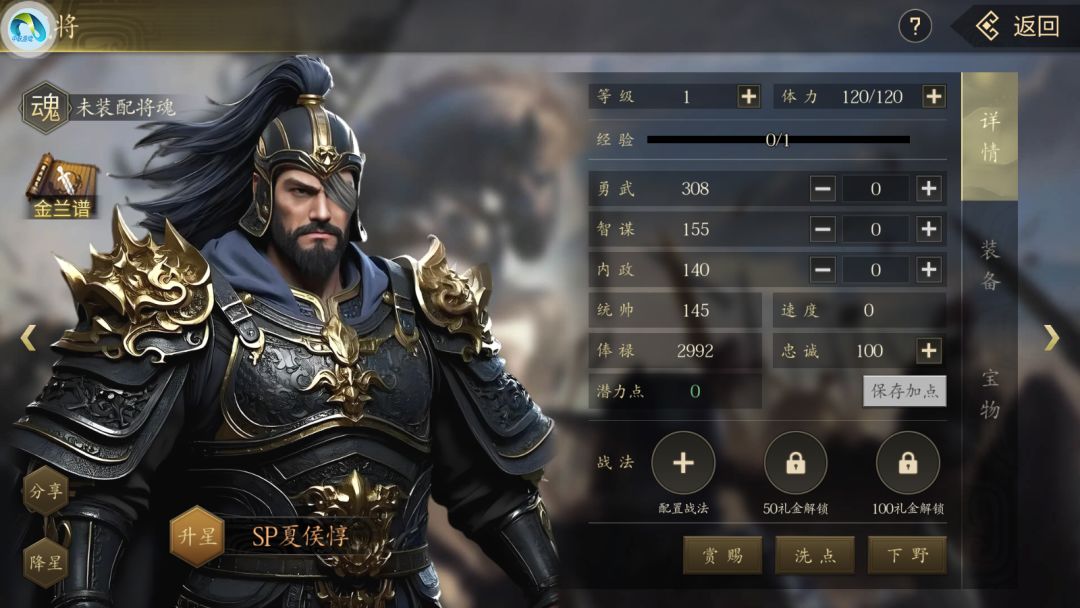不用太在意野地武将,因为开局野地武将是品质最差的一波。非R玩家可以去抓一个勇武野将来过渡,R玩家直接培养骠骑将军或者SP武将即可,注意事项:专属武将一赛季不要洗点。有条件的可以追求满潜力升星,毕竟目前版本私有武将是我们最后的底牌。有人要问君主将加错点怎么办,有个小技巧,降一个星潜力点就回来了。