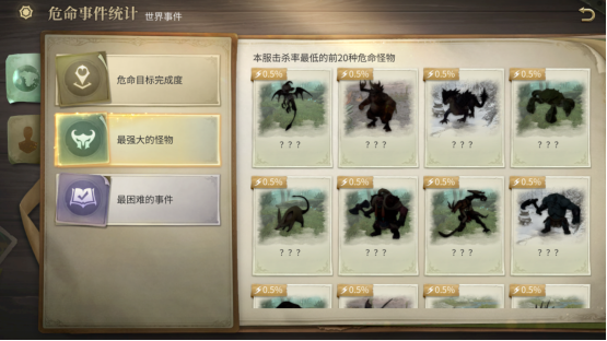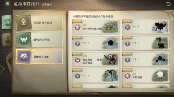 危命事件统计,在危命图鉴里可查看服务器内危命完成情况。