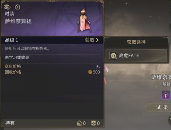 走进紫色FATE圈里会弹出临危受命·高危的字样,这类FATE一般难度更高,但是概率会出时装箱子,有可能开出萨维奈套等时装。