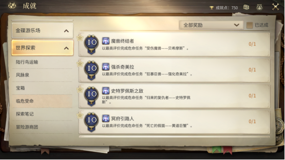 完成某些讨伐BOSS类临危受命后可以获得成就,这类危命通常时限较长(一般为30分钟),并且boss血量较高,难以单人击杀。