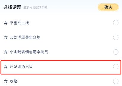 2、勾选#开发组通讯贝 话题后发帖
