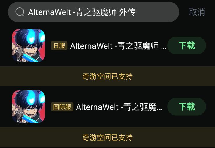 第三步:在奇游内搜索【青之驱魔师】点击下载按钮,即可提前下载游戏,明日游戏开服后就能第一时间体验游戏了!