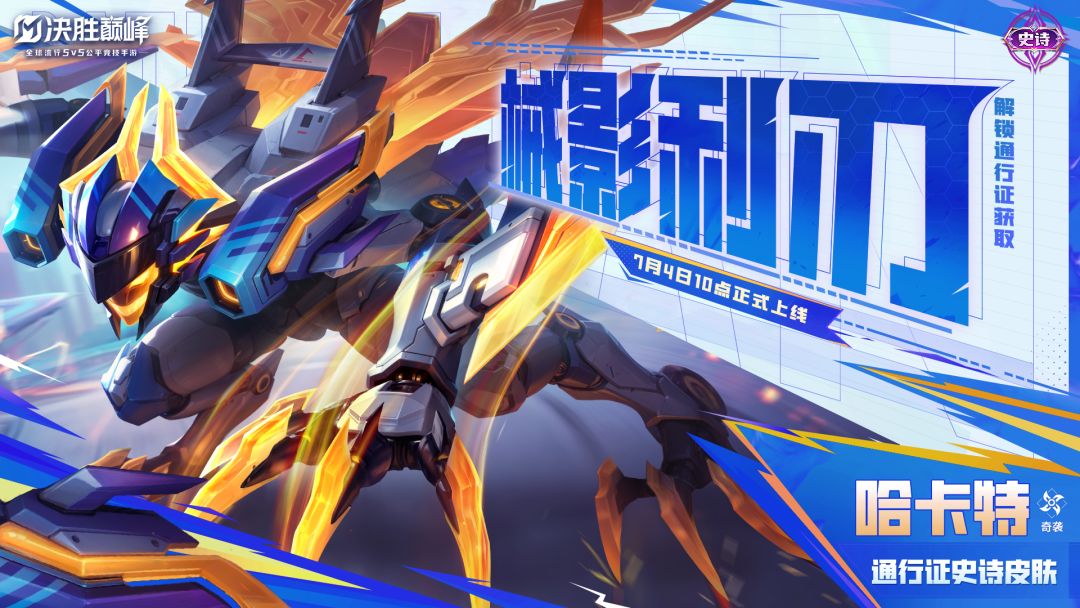 7月4日,哈卡特全新通行证史诗限定皮肤「械影利刃」正式上线!花费366钻石解锁S3赛季通行证豪华版后即可获取~一次购买,无限续杯,通过任务更可返还100%钻石,用于后续通行证购买,每期通行证都将包含3款精美皮肤和海量道具奖励哦!