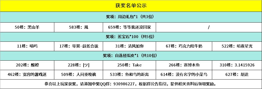 恭喜以下幸运的小骑士获得活动奖励,请中奖的小骑士添加获奖群:930986227,请加获奖群后,登记相关获奖信息,超过15个自然日未进群未登记视为放弃奖励~