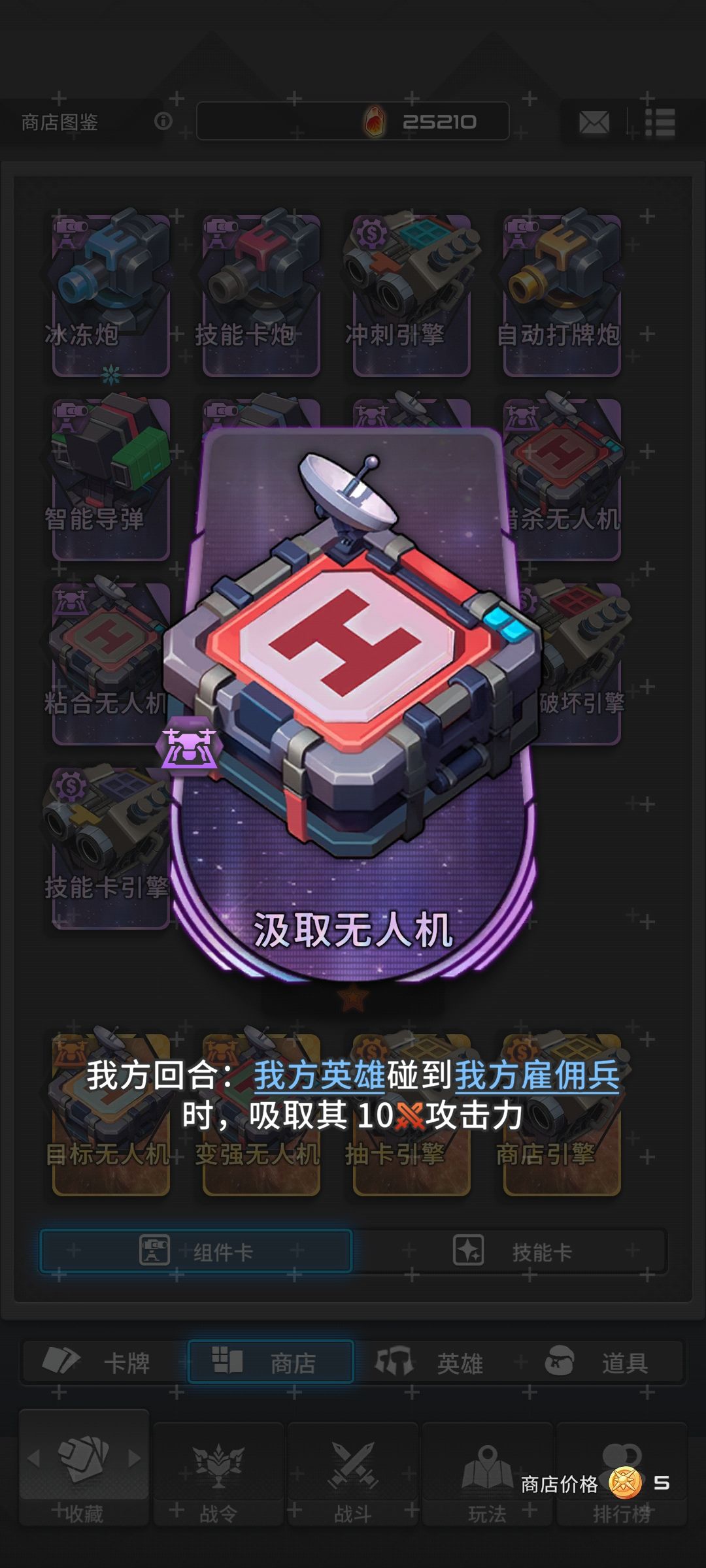 组件推荐:组件破坏引擎,抽卡引擎,汲取无人机,变强无人机 ,方舟炮,