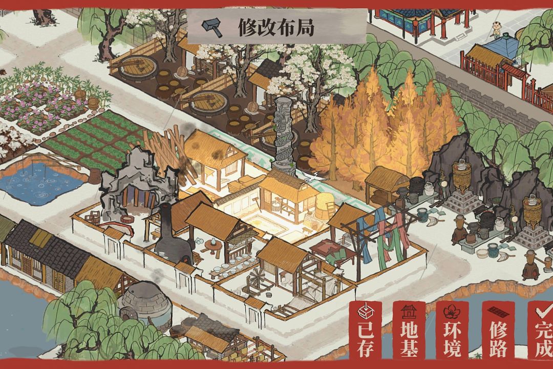 因为加成问题所以菜地的位置做了一点修改,在悦目的基础上尽可能的用到雕像加成。