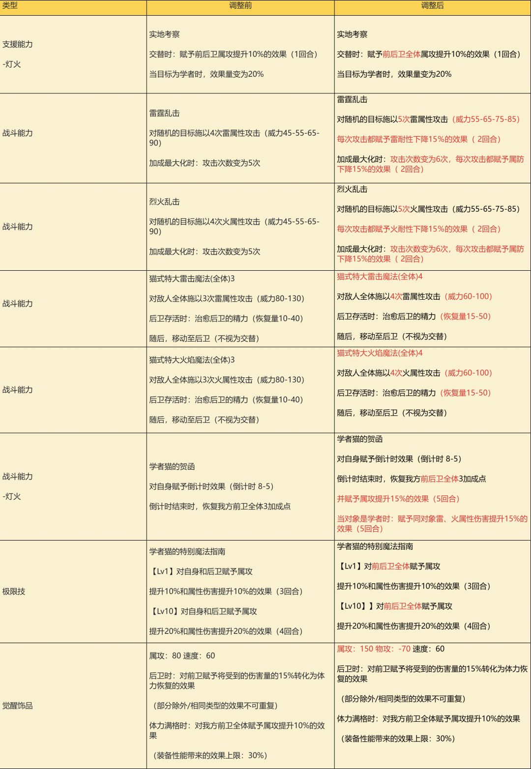 对本期追忆的旅猫“莱拉”进行了性能调整,详情如下: