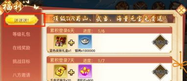 第一次在线10分钟:银两*10w,玄铁*2,修为丹(巨大)*3,鎏金材料任选箱*1