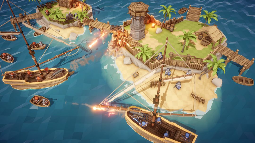 海上作战, 守卫岛屿上的防御塔, 敌人将乘坐船和热气球进攻.