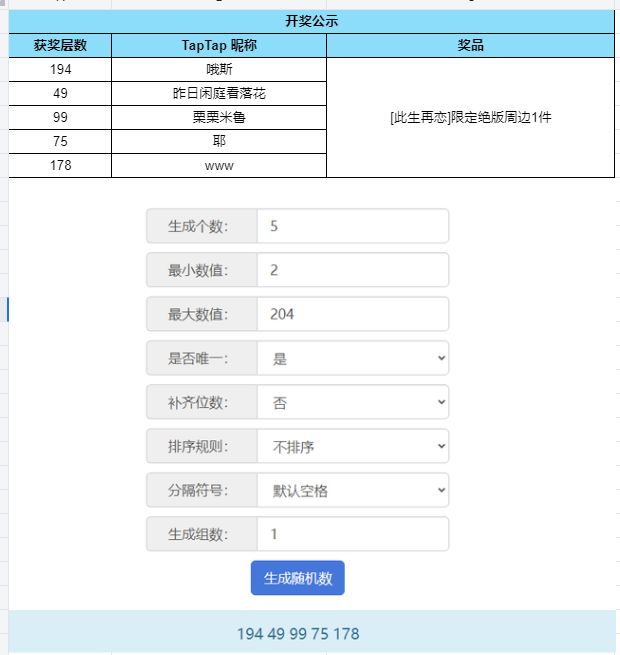 根据开奖结果显示,恭喜以下幸运的玩家们获得奖品: