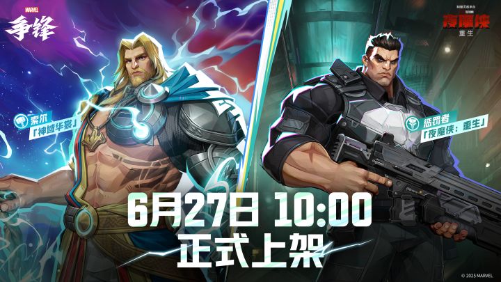 北京时间6月27日10:00,《漫威争锋》将上线全新英雄制服:索尔「神域华裳」与惩罚者「夜魔侠:重生」!