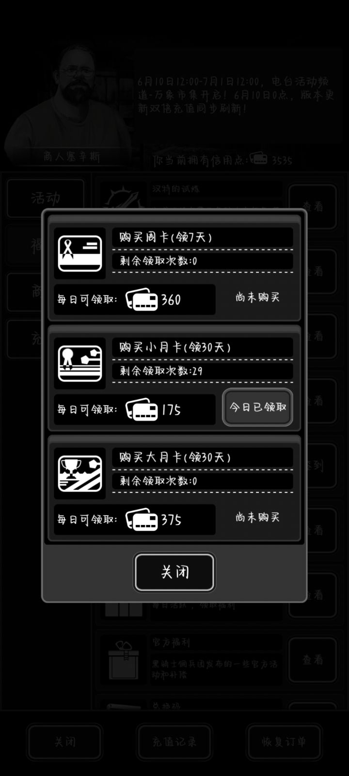 刚弄了个小月卡