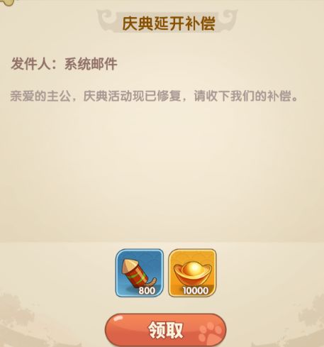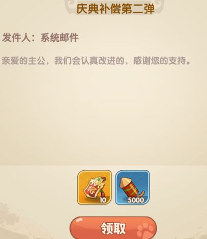 给各位主公带来不便深感抱歉,请收下我们的补偿。