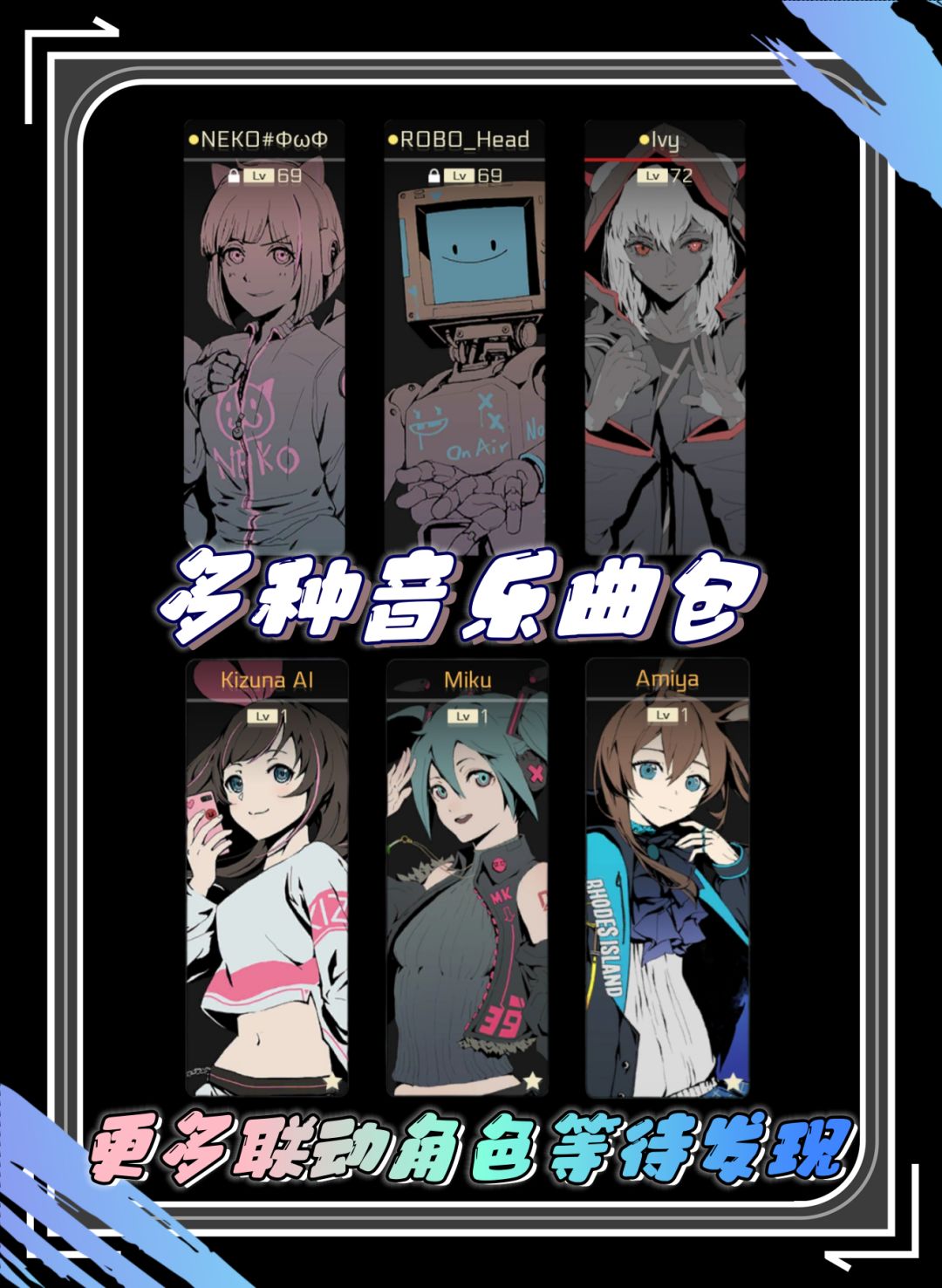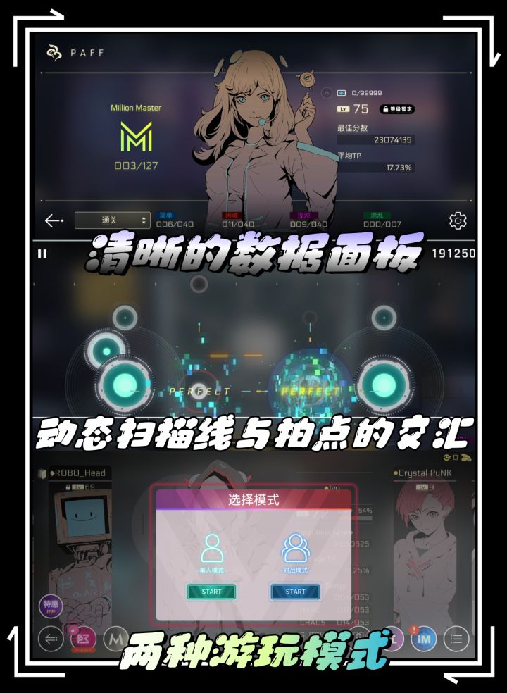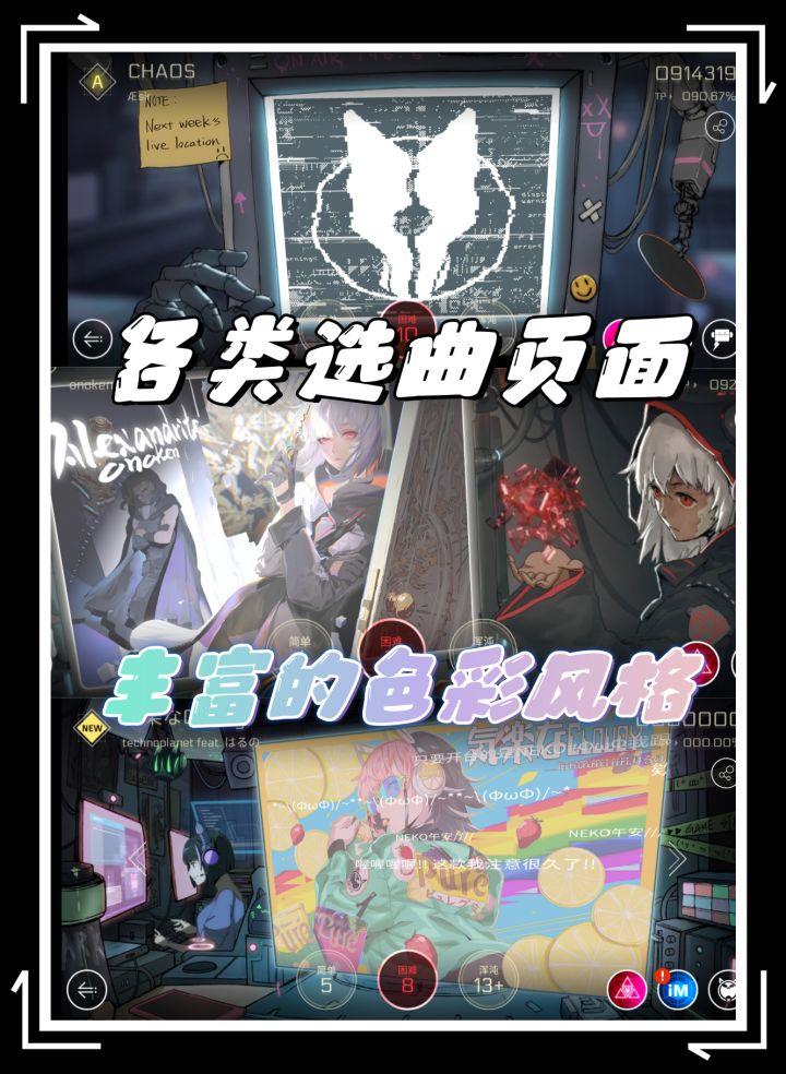 游戏设定在科技高度发达的未来,以“角色章节”替代传统曲包,每位角色承载独特曲风与支线剧情,通过动态漫画过场、虚拟社交媒体、解锁日志文件等方式层层展开。