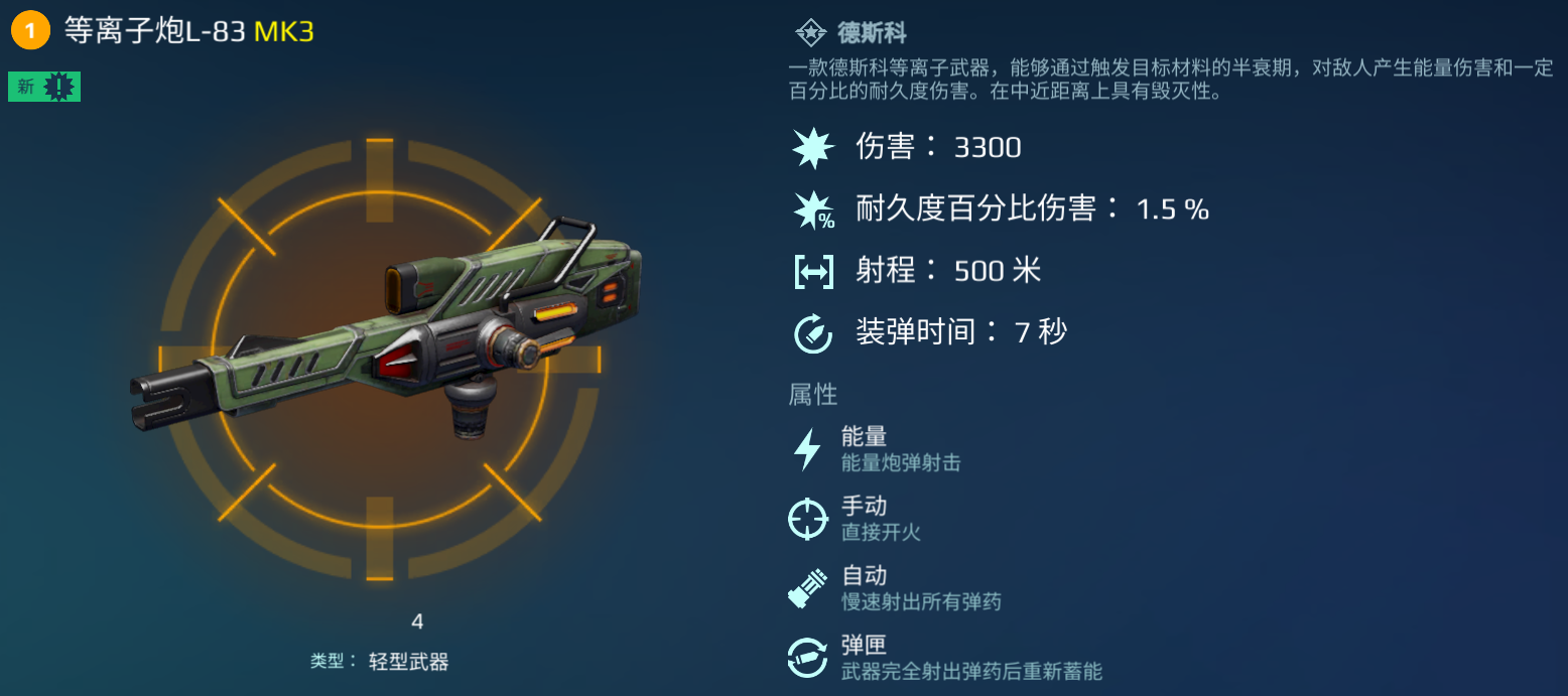 武器:[等离子炮M-80]、[等离子炮L-83]